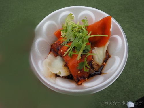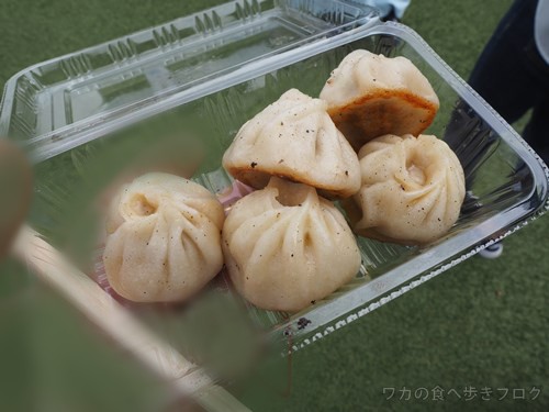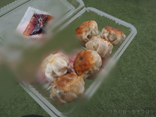 お隣の焼き小龍包は逆に肉汁は控えめで皮がムチッと、少々油感が・・・