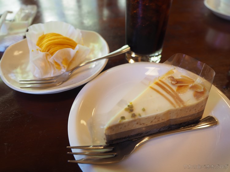 キャラメルのケーキと、かぼちゃモンブラン、とアイスコーヒー