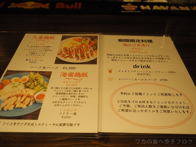 チキンオーバーライス1000円 と カオマンガイ1200円 の2種類