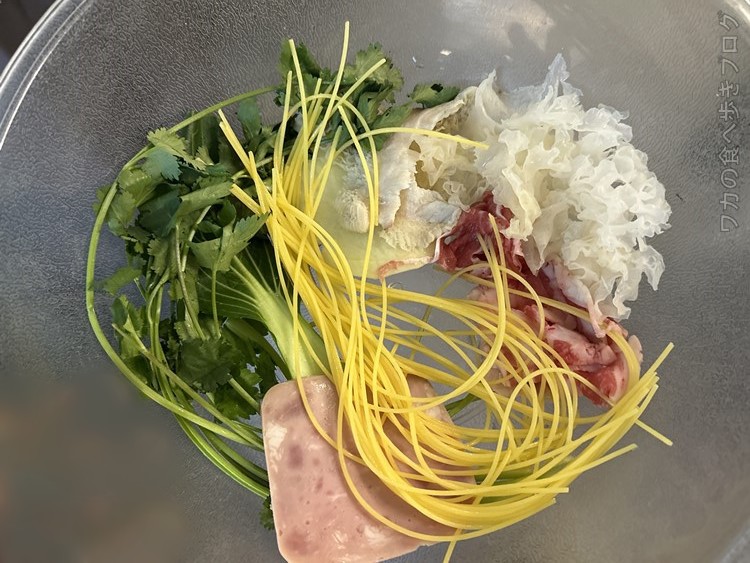 いつもどおり、白キクラゲたっぷり、パクチーと麺と肉