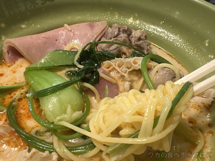 麺チュルチュルッと、ピリ辛牛骨スープ美味しい♪