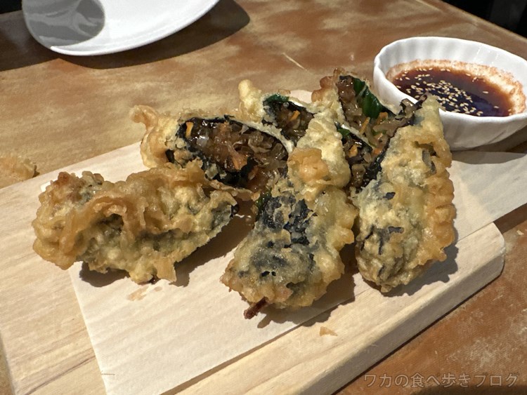 チャプチェが、海苔で巻いて、天ぷらになってる(・∀・)