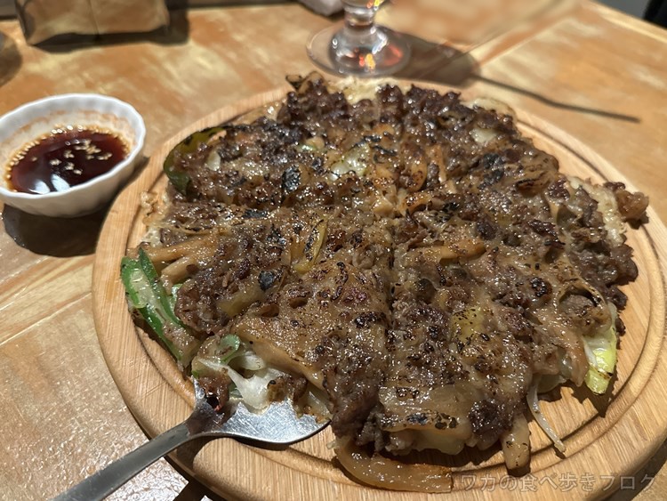 ムチッとしたチヂミの上にたっぷりプルコギ乗っててピザみたいな感覚