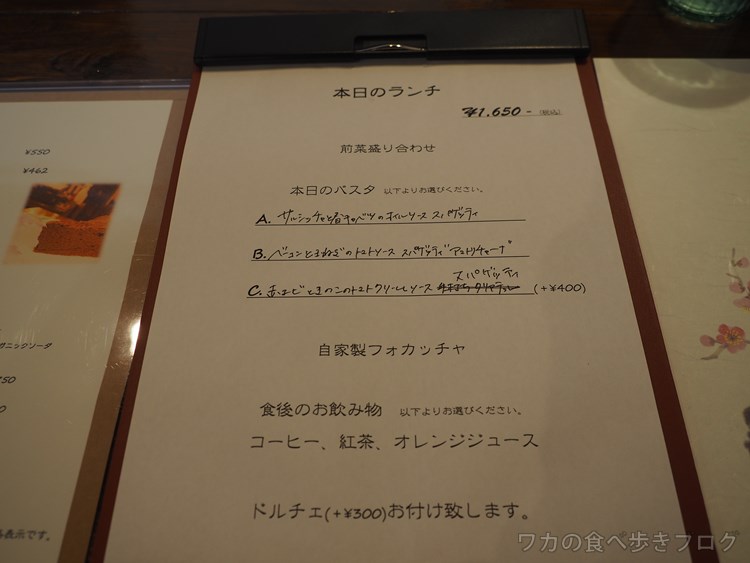 ランチは1650円、追加のパスタやドルチェもあって、だいたい2000円くらい?