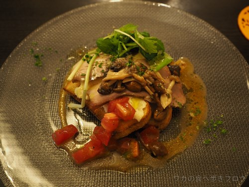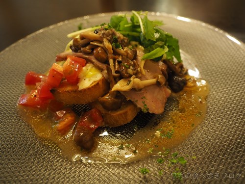 自家製パンチェッタ・コットとキノコのオープンサンド