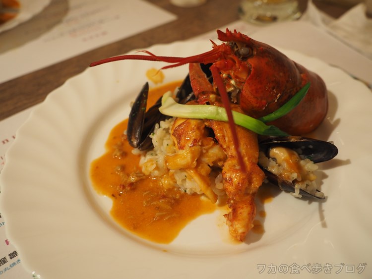 2品目はイリヤ米7分づきリゾットとオマール海老のアメリケーヌソース