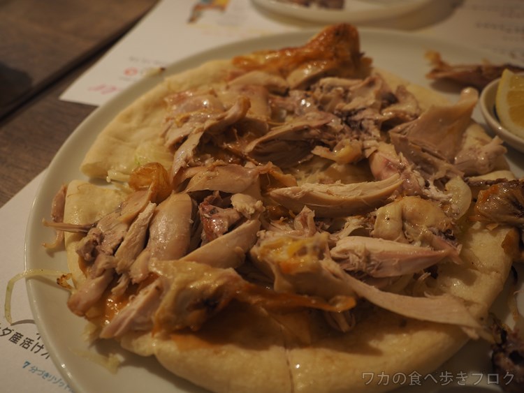 たぶん鶏肉を食べながら、ピザ生地をつまむ感じだろうけど・・・