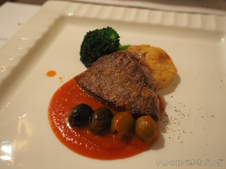 5品目、オーストラリア産仔牛のソテー、ピッツァイオーラ風
