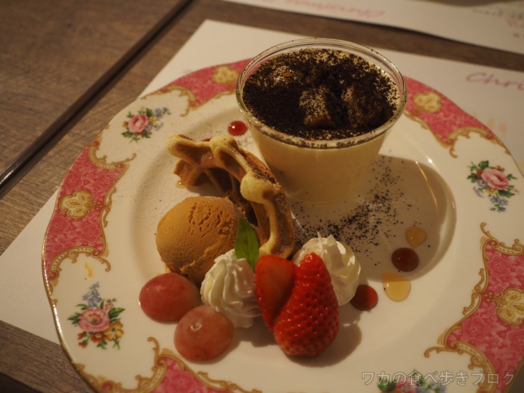 ほんわりワッフルにキャラメルアイス、甘ぁいブドウに苺と