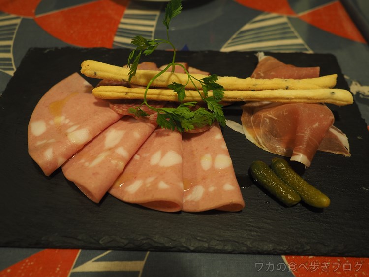 生ハムやサラミ、鴨にモルタデッラ、グリッシーニも