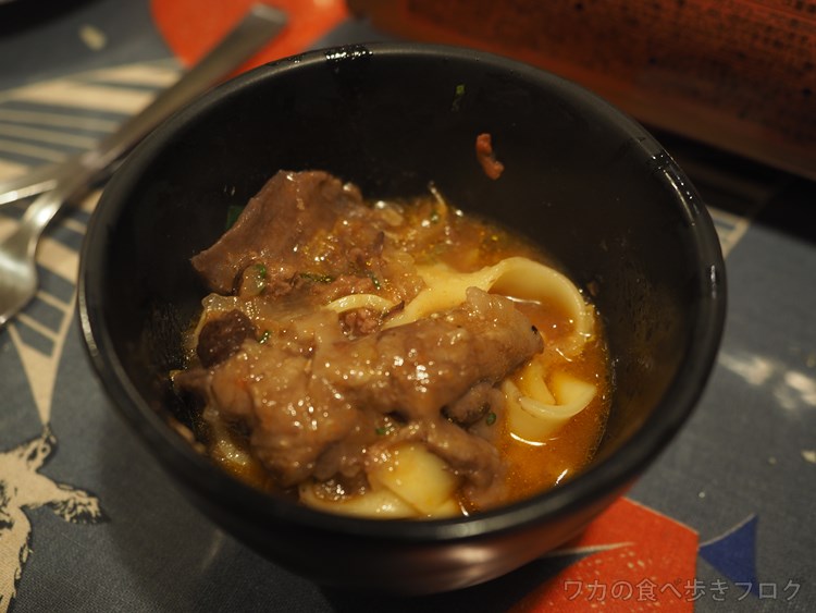 食べ終わるとフィットチーネと、飛騨牛の煮込みを投下!