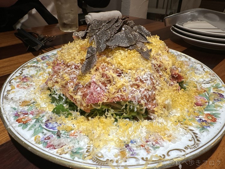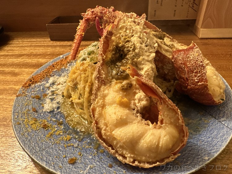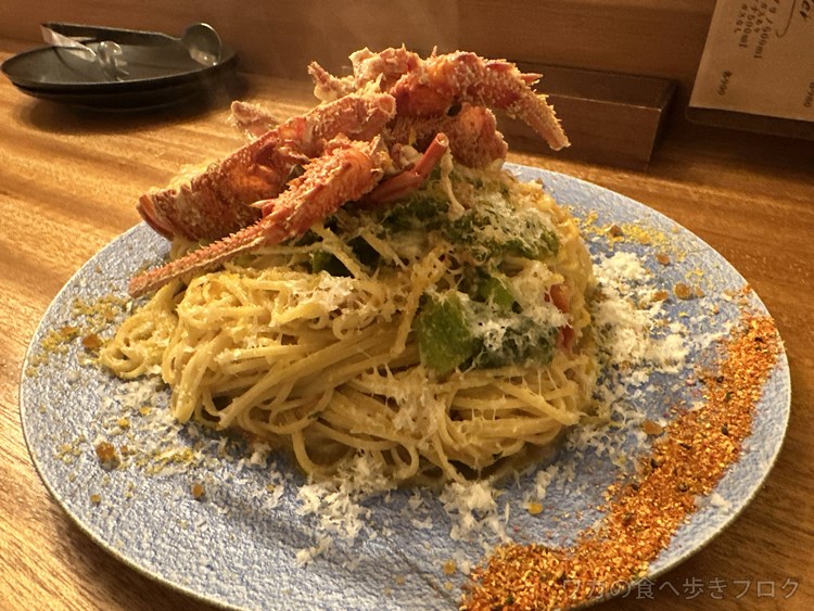 ロブスターと九条ネギ、カラスミのタリオリーニパスタ