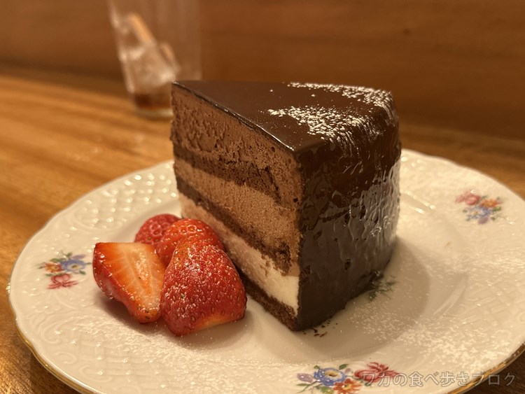食後にショートケーキ チョコレートケーキ