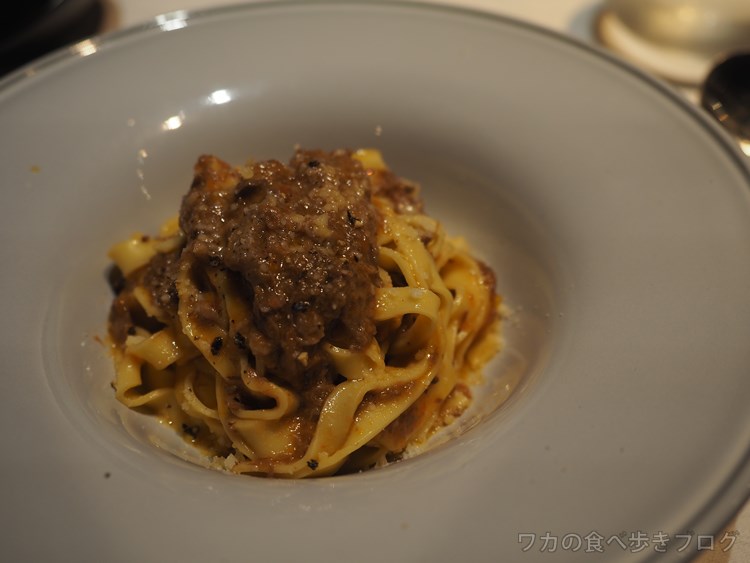 パスタはその場で作る自家製麺、太めでムチシコ♪