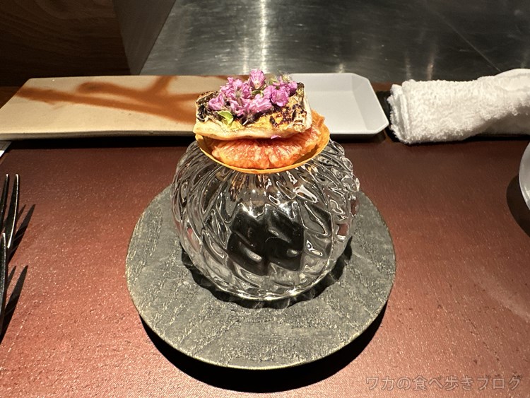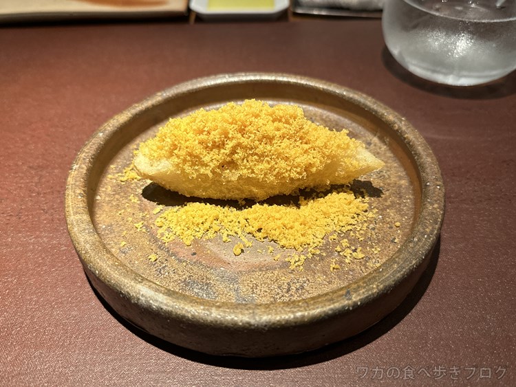 4.フリット 宝石ハタ と白ワインで塩抜きしたカラスミ