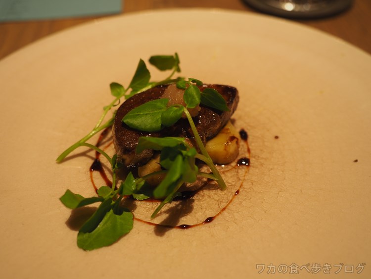 甘酸っぱいバルサミコがフォアグラに良いアクセント、美味しいわぁ〜