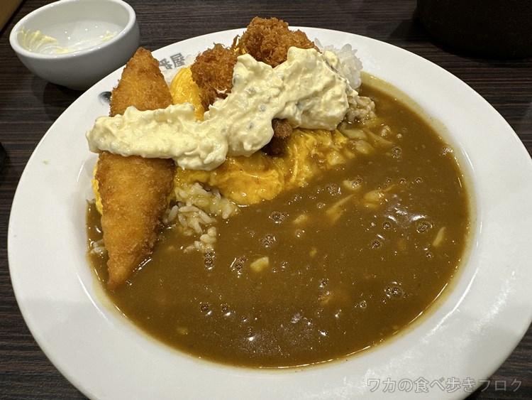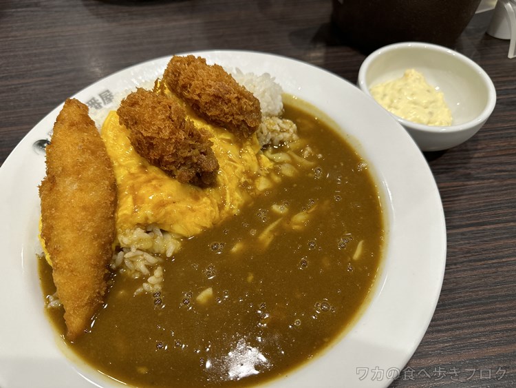 スクランブルエッグカレー(+チーズ、牡蠣、ハーフフィッシュフライ、クリーミータルタル)