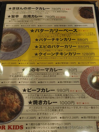 カレーはポークからビーフ、台湾、キーマ、バターチキンと色々な種類