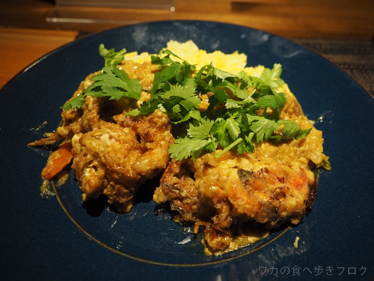 本日のカレーは、タイカレー蟹唐揚げ付き