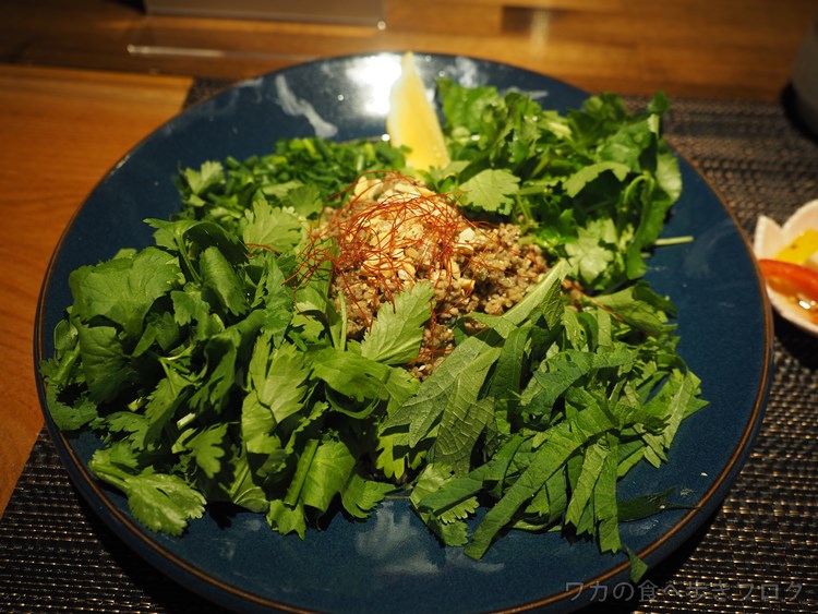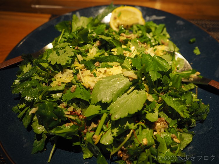 パクチーみたいな強い香草も、大葉三つ葉が大量に一緒になって、