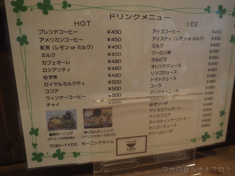 連れはコーヒー450円 + 朝ごはんセット150円にしてました