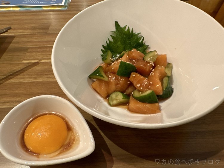 ランチにもあるサーモンユッケやハンバーグとか色々頼んでみました(・∀・)