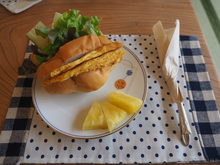 コッペパンは柔らかく、野菜と玉子であっさりと優しい味わいのサンドイッチ♪