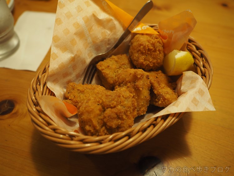 そこそこの大きさの唐揚げ、衣カリッサクッと、ジューシーで結構好きです♪