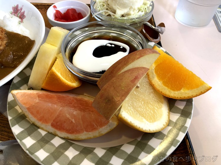 カツカレーでもしっかりボリューム、フルーツでさらにパンパン♪
