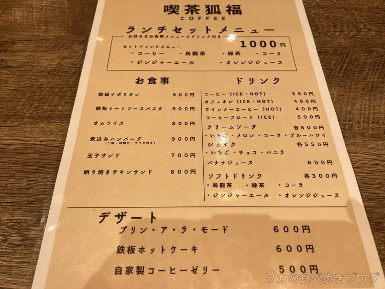 狐福ランチ1200円(ドリンク、デザート付き)