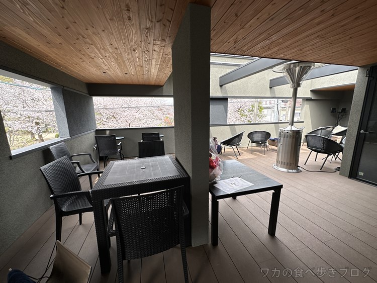 2階のテラス席、屋根は付いてるけど、ほぼ外っていう開放感