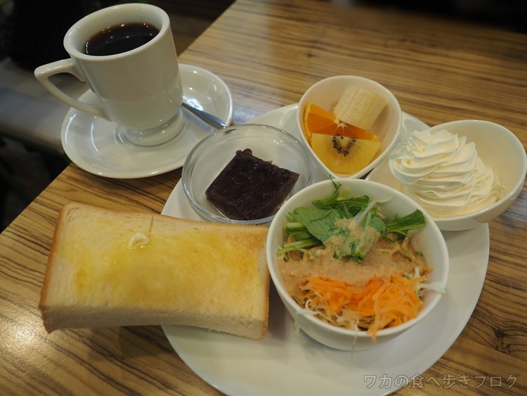 トーストに加えてフルーツにサラダにあんこに、、、ホイップクリームたっぷり!