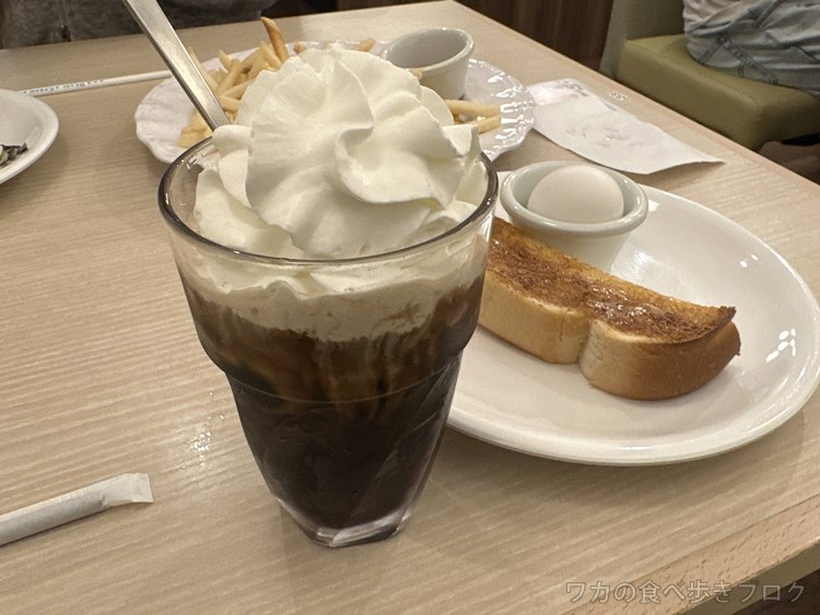 アイスウィンナーコーヒー590円+モーニング と 山盛りポテト450円