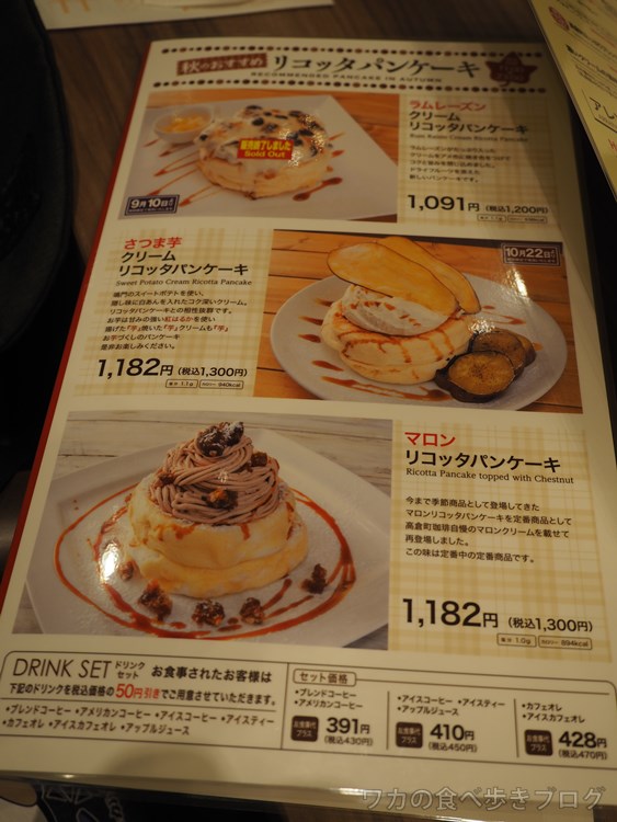 マロンパンケーキ1300円 と アイスコーヒー500円 セットで-50円