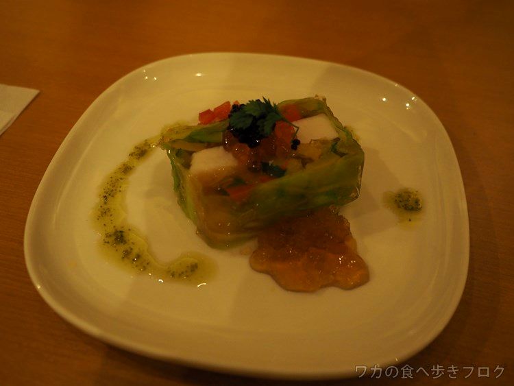 前菜が、ゼリー寄せから始まって、雲丹の何やら、