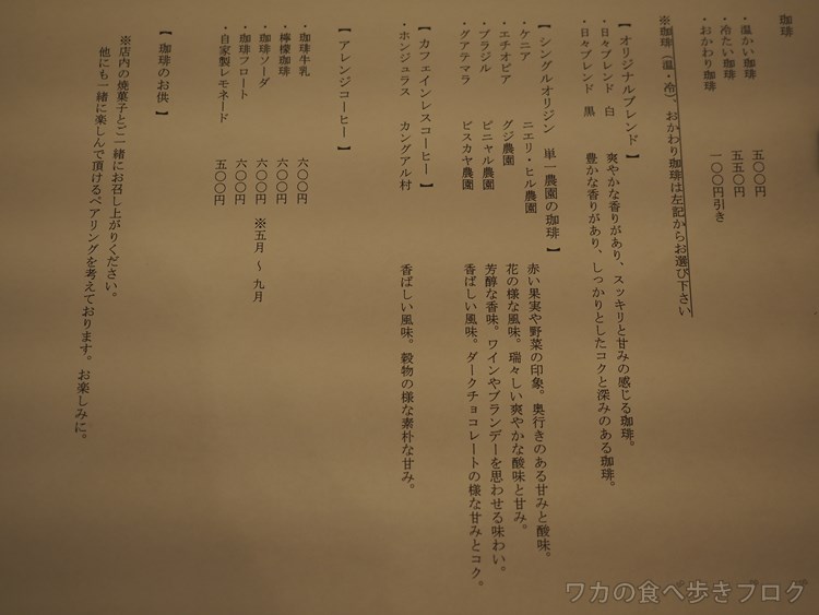 メニューは珈琲に、アレンジコーヒーも。