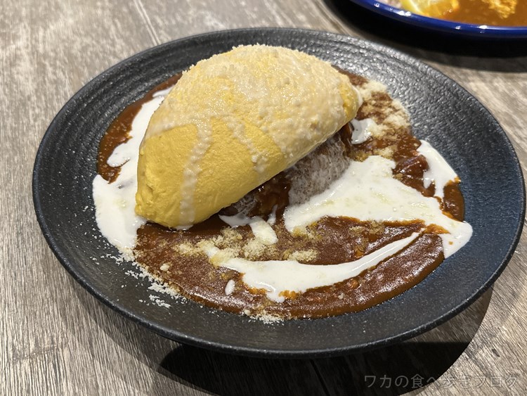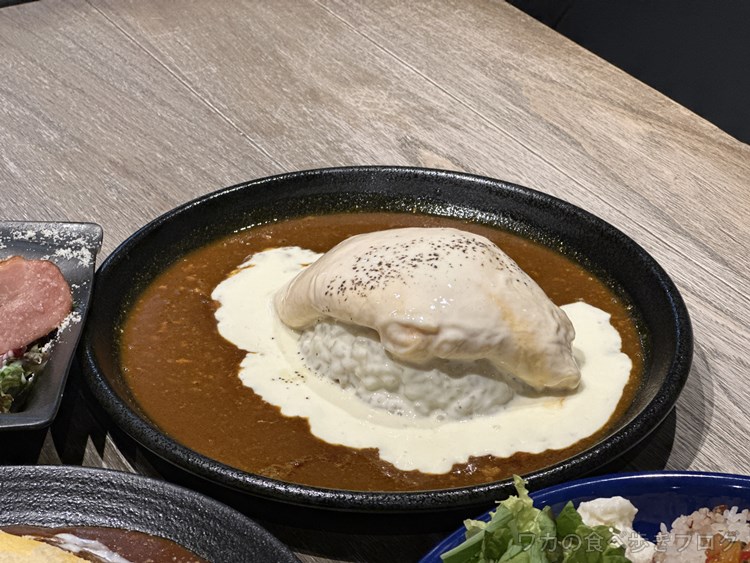 綺麗なオムレツが乗ったチーズクリームオムカレーとか