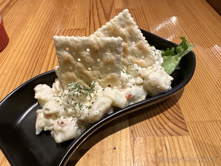 クラッカーみたいなんの塩気とポテサラ少し酸味あって合うね(・∀・)