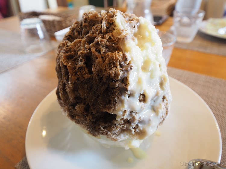 結構大きいかき氷♪ ほうじ茶はデフォルトで練乳とハーフになってるそうです(・∀・)