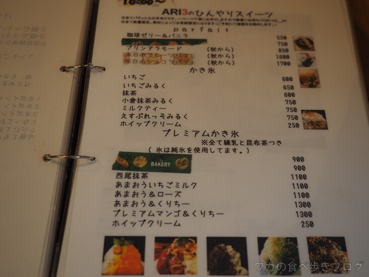 かき氷メニュー