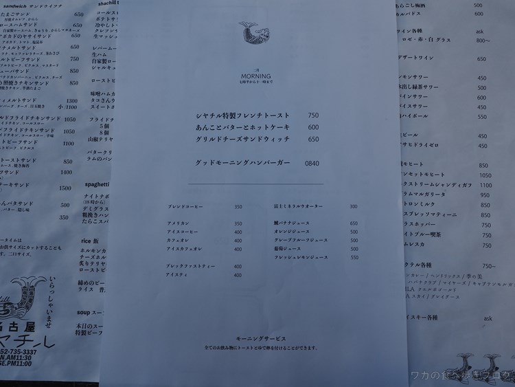 メニュー。モーニングは通常のモーニングサービスもあるけど、