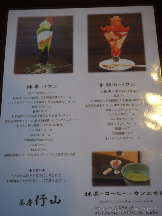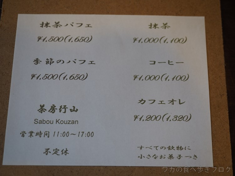 メニューはパフェとドリンク。ドリンクはケーキやお菓子が付いてセットの値段。