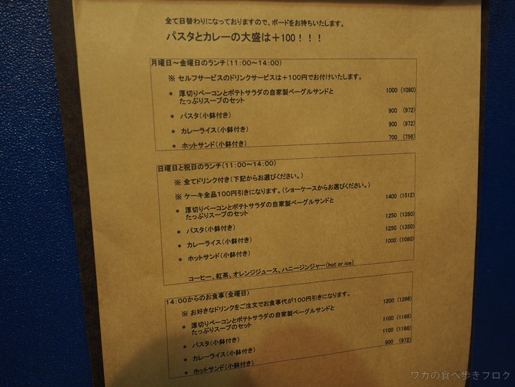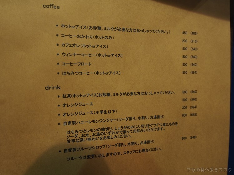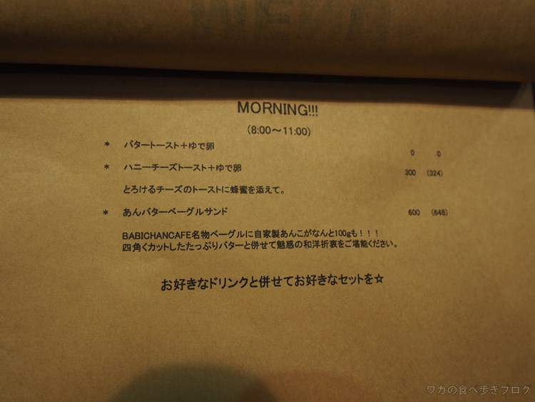 ハニーチーズトースト、ベーグルサンドの追加料金がありました