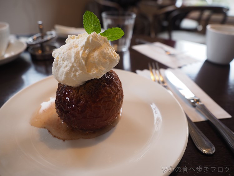 丸ごとの焼きリンゴでクリーム乗ってる♪