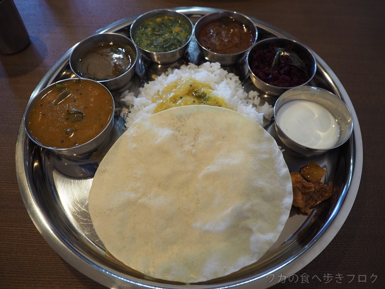 ご飯と薄いパリパリなのと、カレーや色々な具材を混ぜながら頂くスタイル。