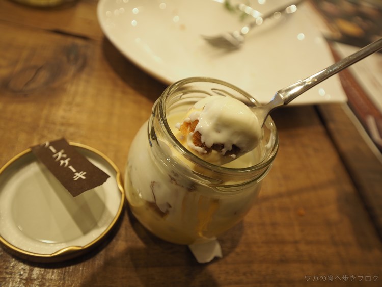 チーズケーキのプリン、こちらはフレークのようなサクサクした食感