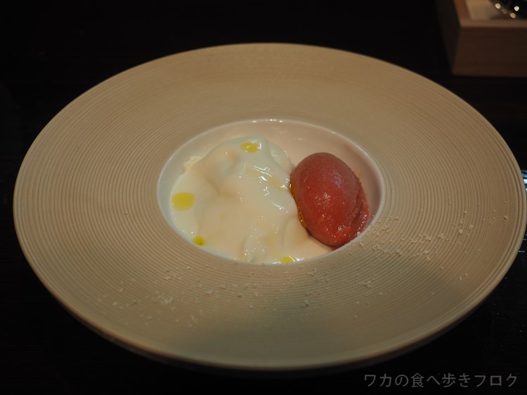 パンナコッタに酸味の効いたジェラートが