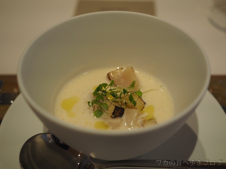 まろやかで旨味がしっかり、ホタテにクレソン、リンゴの爽やかな甘酸っぱさがアクセント