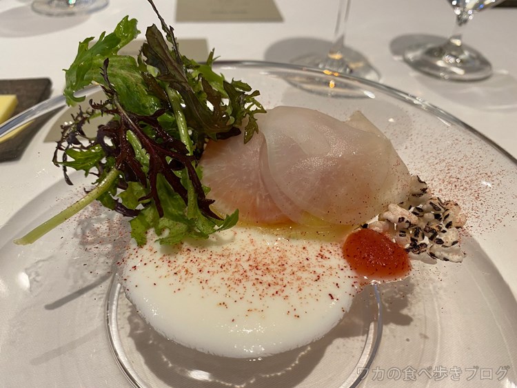 薄いカブが乗ってる甘エビが、ねっとりとした甘さで