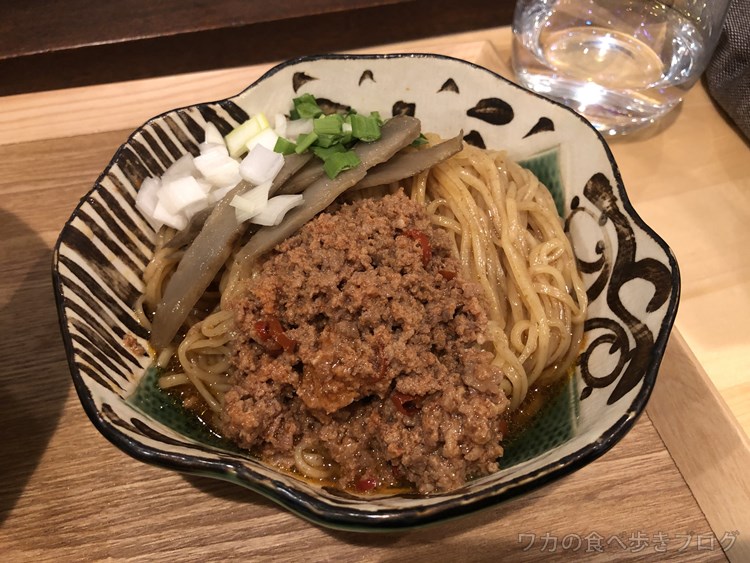 ピリ辛ミンチたっぷりの和え玉、ガッツリパンチのある味わいで旨い♪